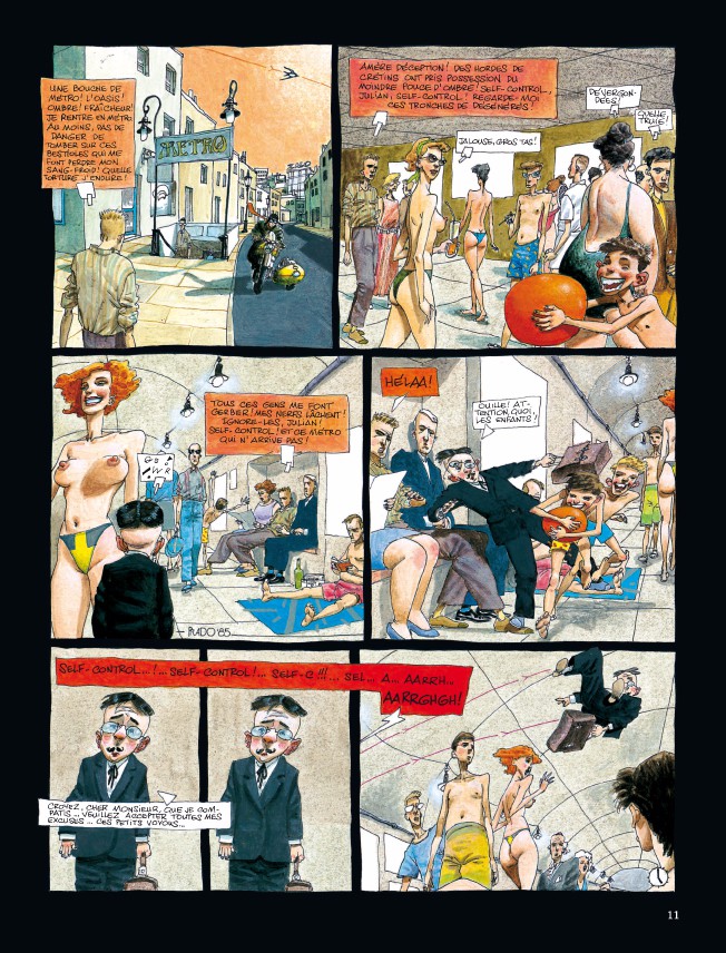 C’est l’album intégral des Chroniques absurdes en version tirage de tête avec jaquette numéroté de 1 à 777 exemplaires enrichi d’un dessin inédit, signé par l’auteur, imprimé sur Rives Shetland blanc naturel 250g. D/2016/0089/241 indiqué : PREMIERE EDITION EN INTEGRALE Publiés en français par les Humanoïdes Associés dans Chienne de vie (1988), C’est du sport (1989) et Y a plus de justice (1991), les récits composant le présent ouvrage sont édités dans l’ordre voulu par l’auteur, tels qu’ils apparaissent dans l’édition originale sous le titre de Quotidiana Delirante. A noter que, contrairement aux autres titres de la collection Aire Libre, l’ex-libris est plus petit que le format de la BD ( 21 x 28,5 cm pour l’ex-libris et 23 x 30 cm pour les pages de la BD).