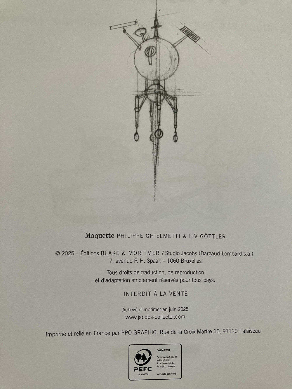 Blake et Mortimer, La menace Atlante, version crayonnée, 2025. Noté au 4e plat « Ce livre vous est offert par l’éditeur. Il ne peut être vendu ». Numéroté 31b sur le dos. Pas de DL, il est noté ici à parution.