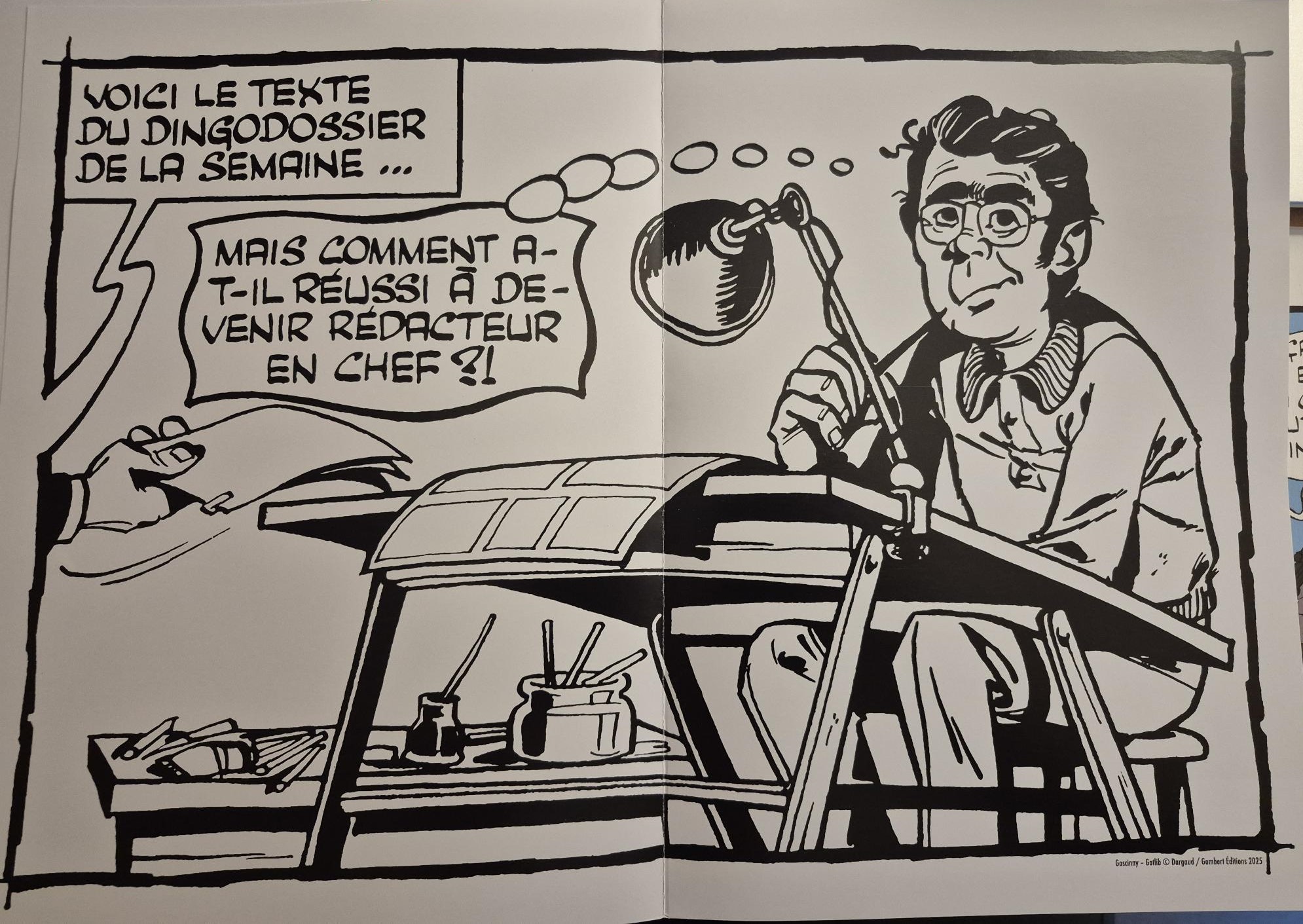 Voici une fidèle reproduction de l’édition de 1967 que Gombert Editions a réalisé en 2025. Ce sont les fameux Dingodossiers de Goscinny et Gotlib, tome 1.