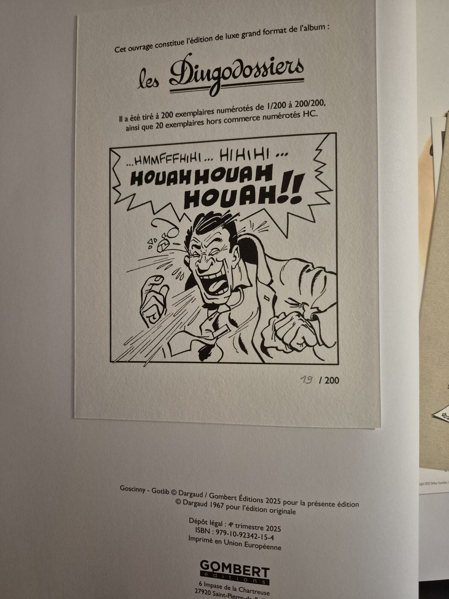 Nous le vendons avec 2 ex-libris signés par GOTLIB, dont un ex-libris numéroté sur 50 exemplaires uniquement qui est signé par Gotlib au dos.