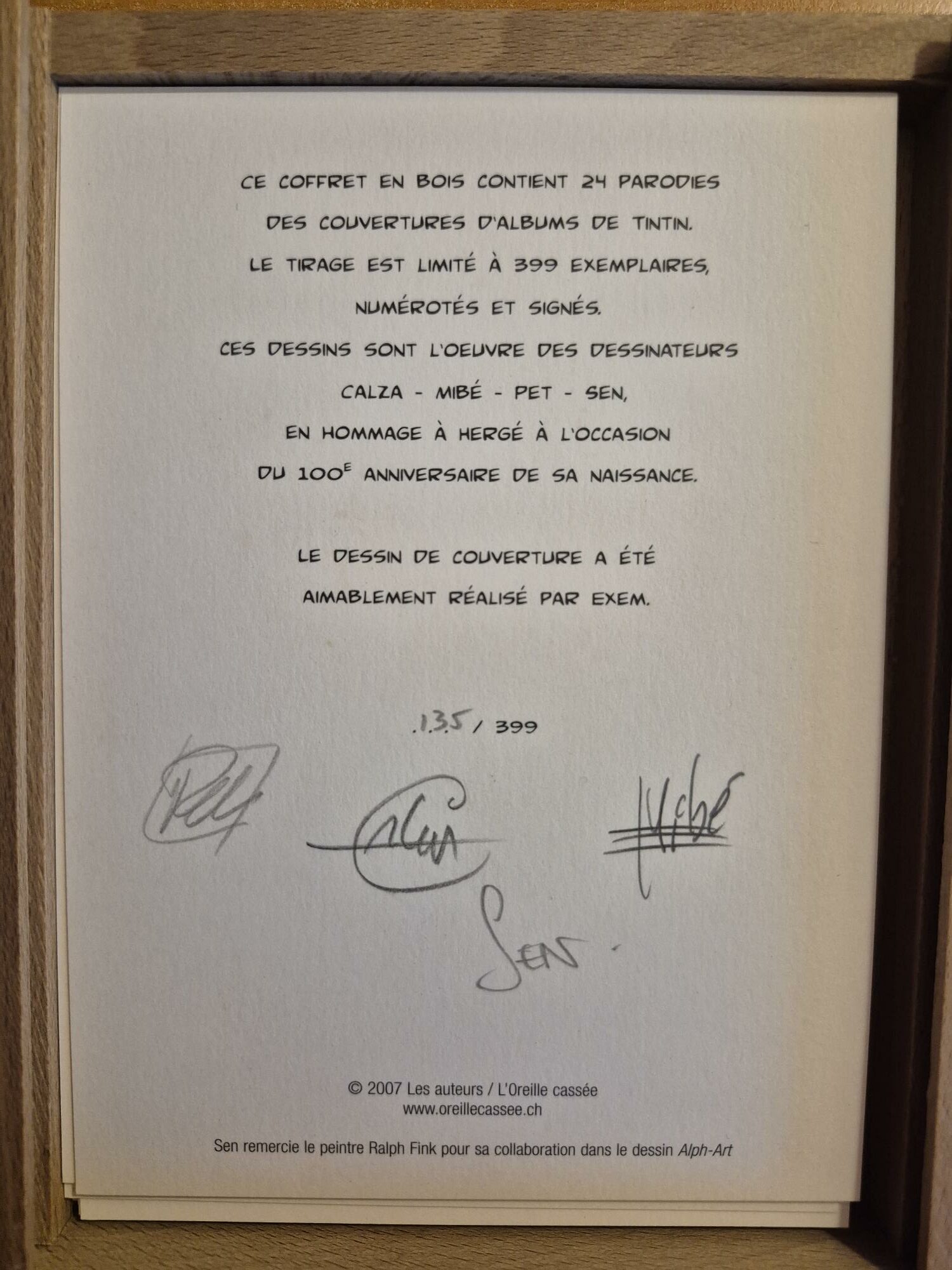 Notre exemplaire porte le numéro 135/399. Edité en 2007.