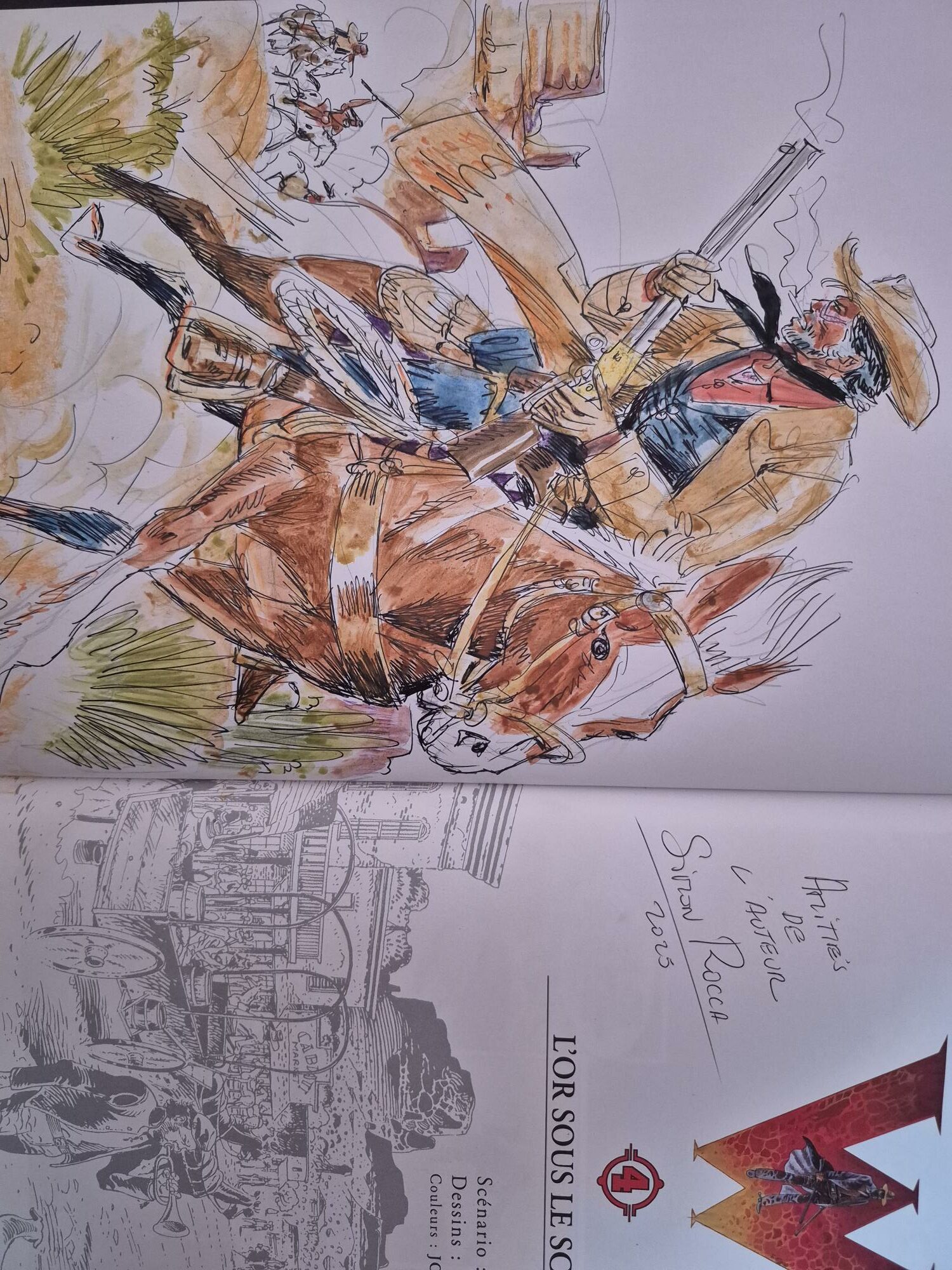 Il est superbement dédicacé par les deux auteurs : Simon Rocca et Thierry Girod. L’un au début de l’album et l’autre en dernière page.